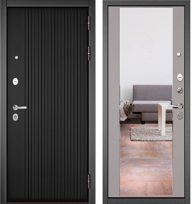 Входная дверь Мастино TRUST MASS-90 Черный матовый 9S-161/Эмаль светло-серая 9S-164, зеркало